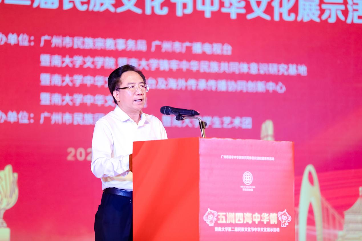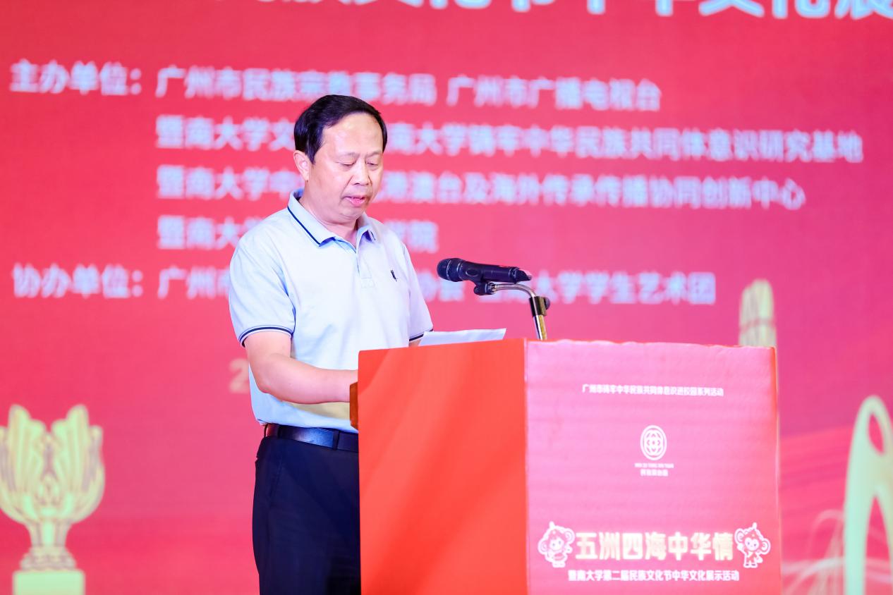 庄汉文在致辞中表示,暨南大学师生牢记把中华优秀传统文化传播到五洲四海的使命,将中华民族共同体意识扎根心中,推动各民族文化的传承保护和创新交融,树立和突出各民族共享的中华文化符号和中华民族形象,为铸牢中华民族共同体意识增添新生活力。