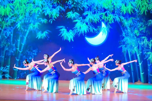朗诵《我在一颗石榴里看见了我的祖国》将多种民族语言巧妙“合道”,展现出五十六个民族如石榴籽一样紧密团结,在理想、信念、情感、文化上的团结统一、守望相助、手足情深。学生艺术团番禺校区舞蹈团为我们带来的舞蹈节目《美丽中国》,翩翩舞蹈描绘出一幅山清水秀的壮美画卷。