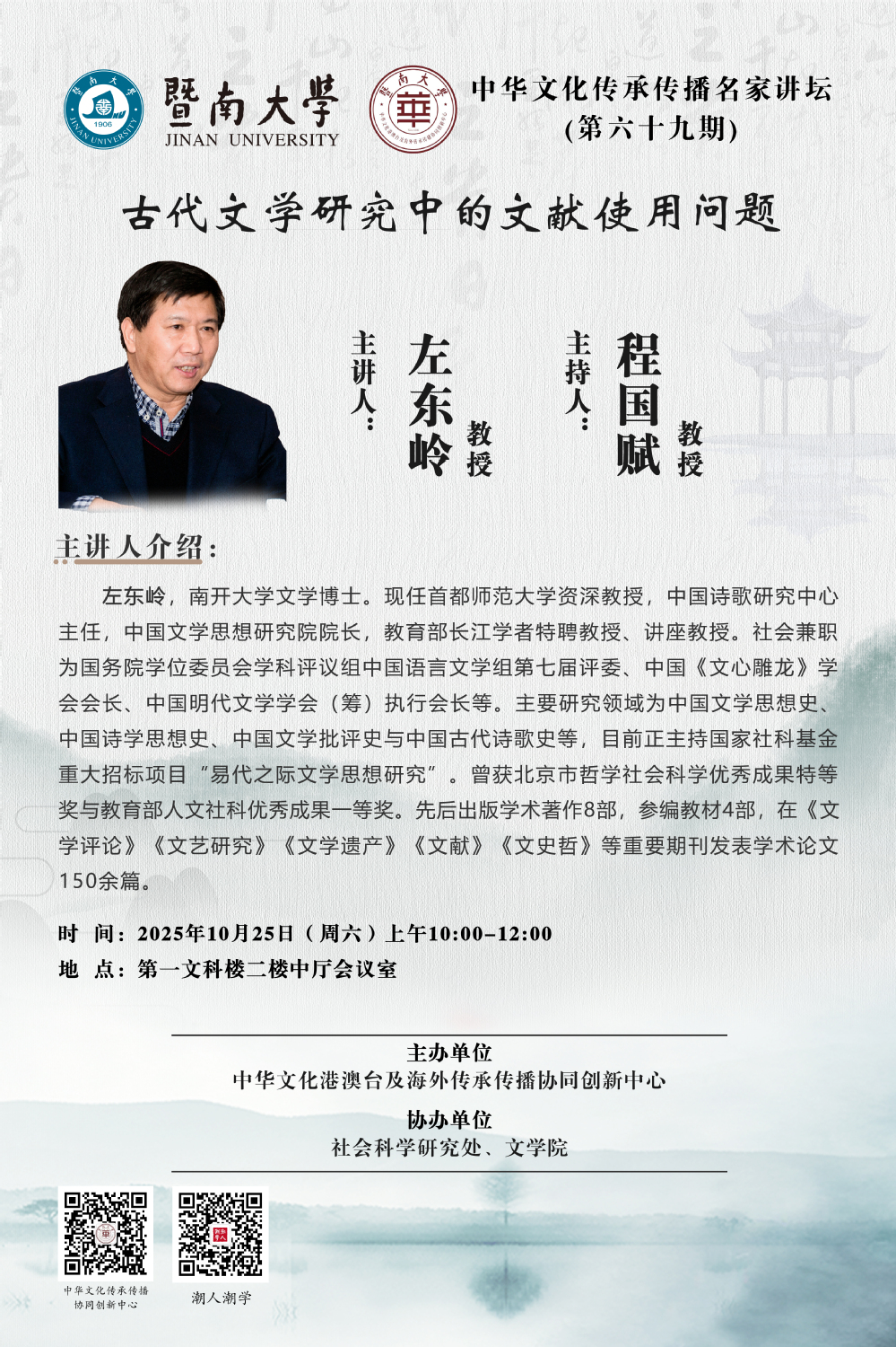 名家讲坛预告(第69期)|左东岭:古代文学研究中的文献使用问题