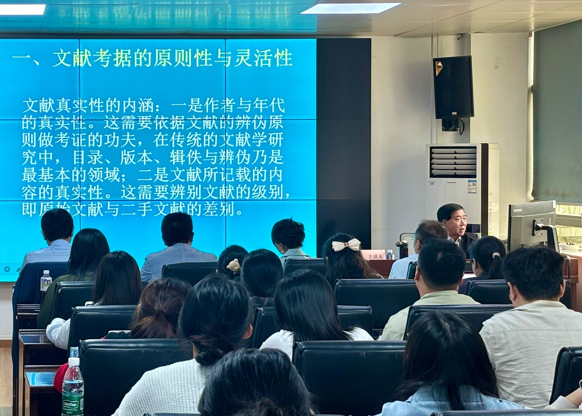 左东岭教授还讨论了关于学问与功力的关系,指出当今学界存在重视文献数量而忽视文献使用有效性的问题。结合自身数十年的治学经验,他提醒在场师生在文献使用过程中务必要态度严谨。