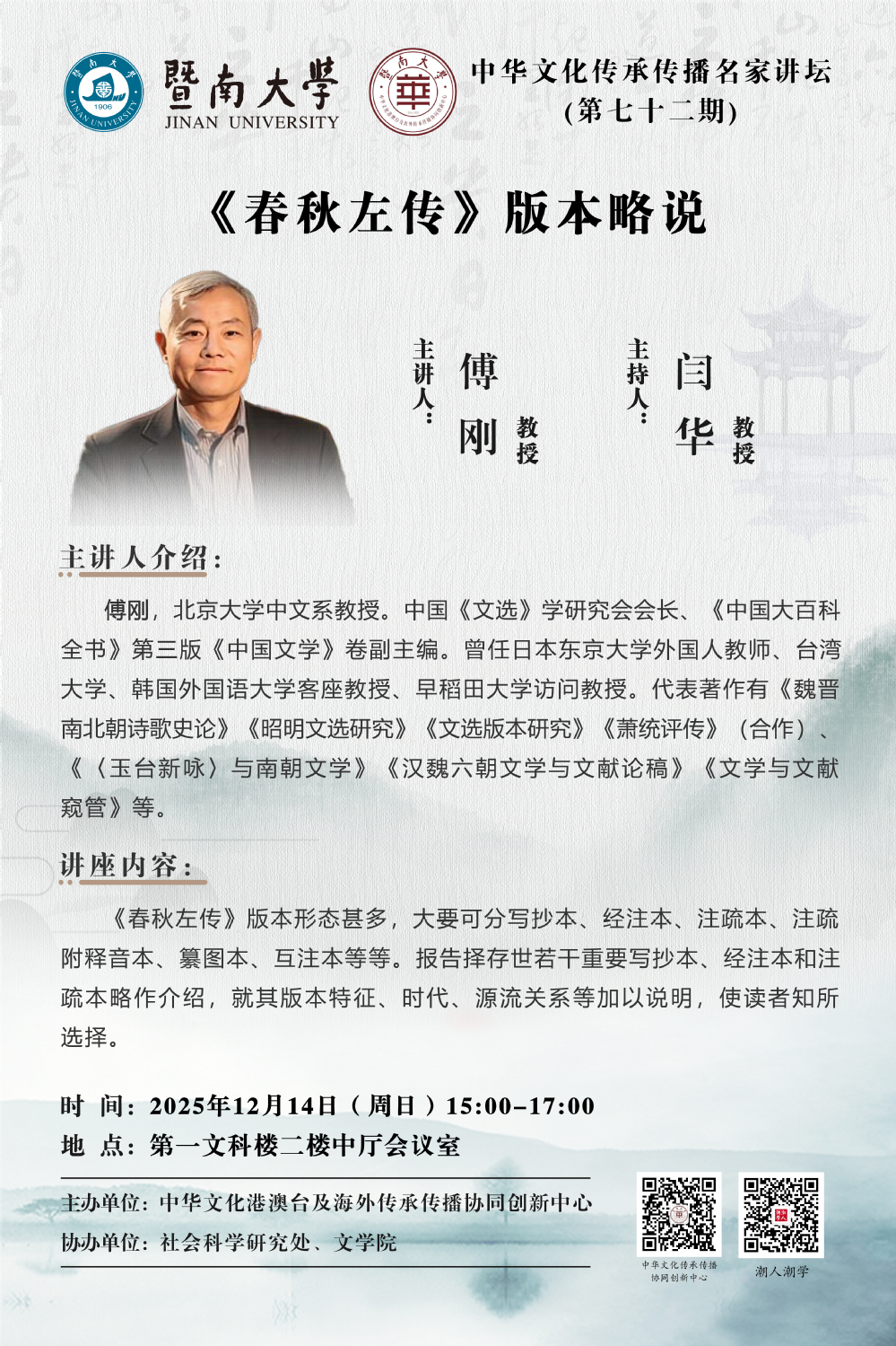 名家讲坛预告(第72期)| 傅刚:《春秋左传》版本略说