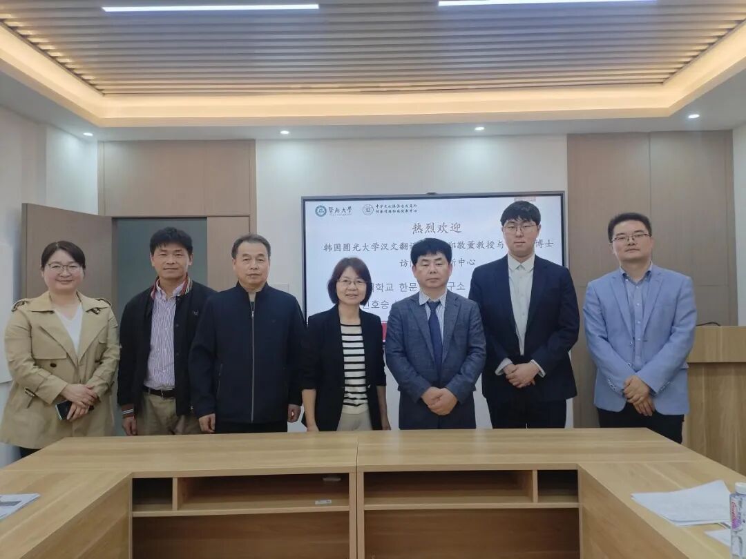 2025年12月1日下午,韩国圆光大学汉文翻译研究所所长、汉文系郑敬薰教授,以及研究所所长助理申皓升博士,受邀访问中华文化港澳台及海外传承传播协同创新中心。协同创新中心副主任朱巧云教授、中外关系研究所支部书记刘永连教授、中文系党支部书记程刚教授、中心办公室主任杨艳及中心教师肖大平共同接待了来访的专家,双方就合作前景进行了深入的座谈交流。